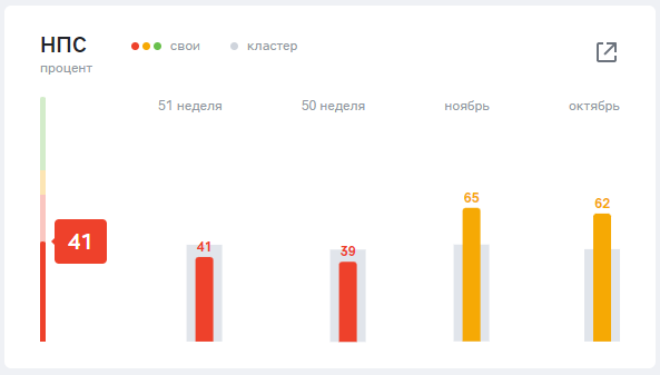 НПС рассчитывается на ос нове опроса покупателей в магазине. При этом не учитываются отзывы покупателей из других каналов: горячей линий, агрегаторов и т. д. Чтобы видеть актуальный уровень НПС своего магазина, регулярно проводите анкетирование покупателей.