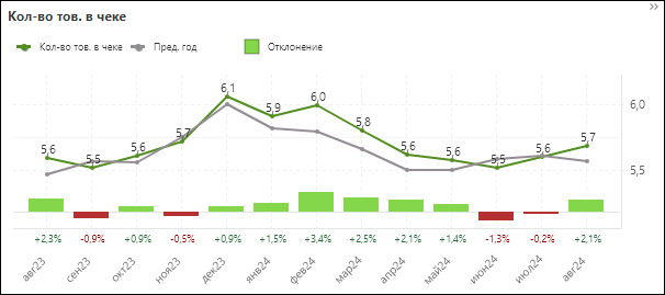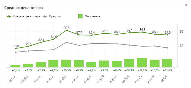 Отклонение отображает разницу по сравнению с этим же перидом в прошлом году.